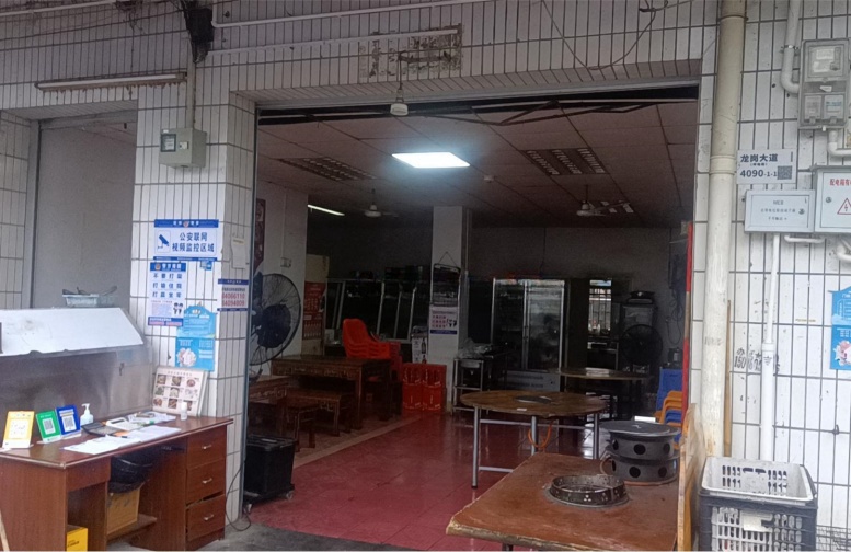 1、店面位于龙岗大道与六联路交叉口,背靠六联社区,临街门面。附近工业园及其配套住宅区多,工人多,餐饮需求大,交通便利。